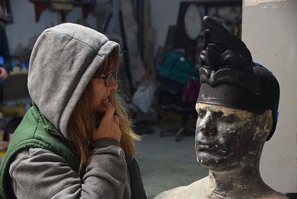 Sonia Espinosa preparando parte del tipo de la comparsa de Martínez Ares